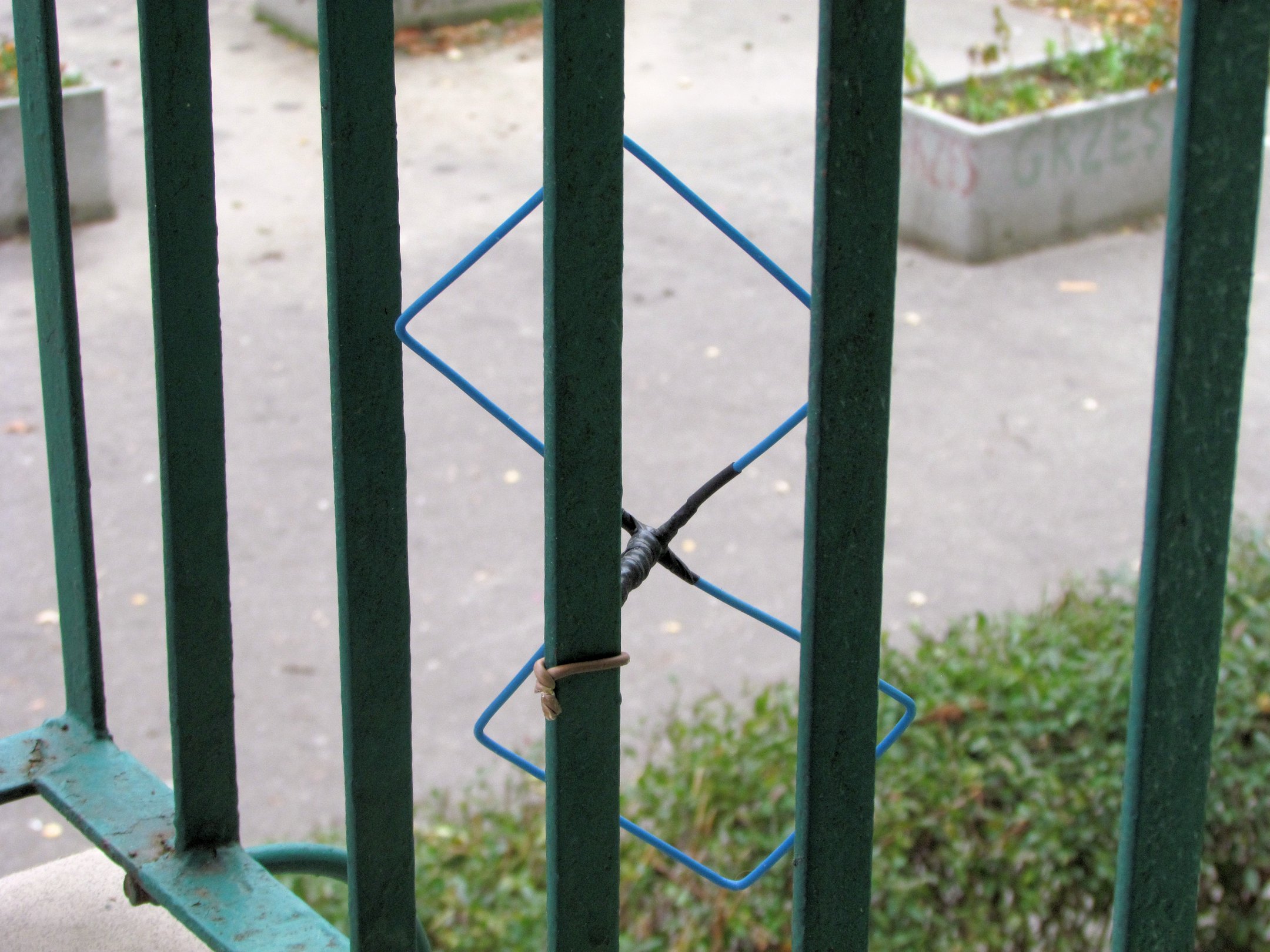 Użyty drut to typowy miedziak 2.5mm^2 używany w instalacjach elektrycznych, w szczególności w dopływach do puszek i gniazdek. Jak widać na zdjęciach, pozostawiłem izolacje, która powinna nieco uchronić przed wpływem zjawisk atmosferycznych panujących za oknem. Nie ma to wpływu w jakimkolwiek stopniu na parametry anteny (przynajmniej nie powinno).