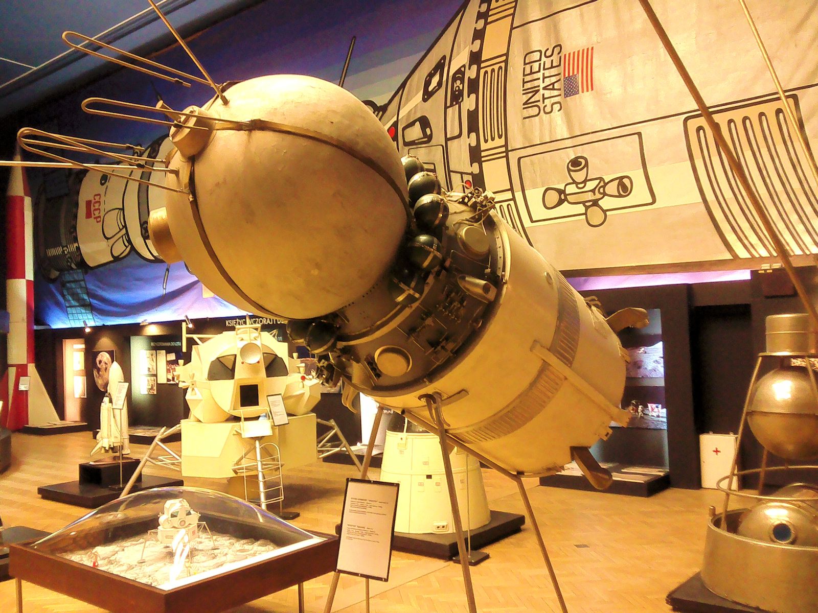 W wystawie poświęconej astronomii i astronautyce najbardziej zaciekawiała mnie historia podboju kosmosu, szczególnie lotu pierwszego człowieka - “Pierwszy był Gagarin” i “Pierwszy Polak w kosmosie”. A szczególnie ekspozycje i modele radzieckich statków kosmicznych: Sputnik i Wostok.