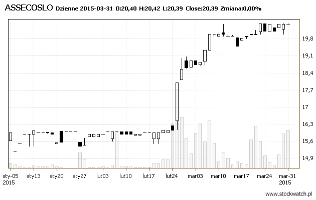 Publikacja raportu rocznego wywindowała cenę, a akceptacja rekomendacji zarządu o podziale zysku w wysokości 1,48 zł na akcje pozwalała dalej pompować wycenę walorów tej spółki. Cena wróciła do poziomu zbliżonego do zeszłorocznego okresu dywidendowego. A ja zaspałem, myślałem o szybkiej spekulacji na Enerdze, po której zgodnie z planem powinienem zwiększę ilość papierów Asseco. Niestety nie udało się na czas, a tak zgarnąłbym na tej fali niezły zysk.