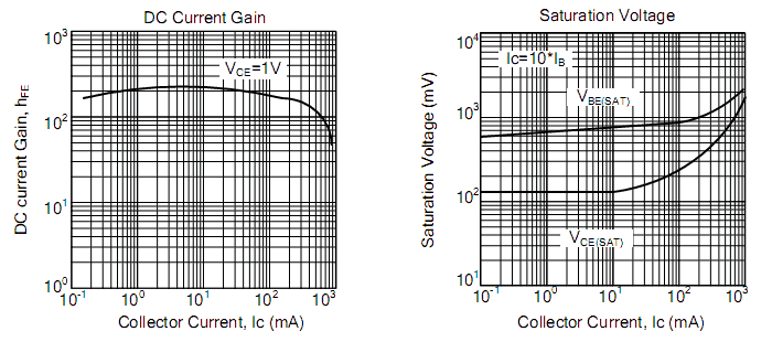 Dane te potwierdzają charakterystyki zawarte w katalogach. Przy prądzie kolektora na poziomie 200mA bez problemu wzmocnienie prądowe powinno wynosić znacznie powyżej 100.