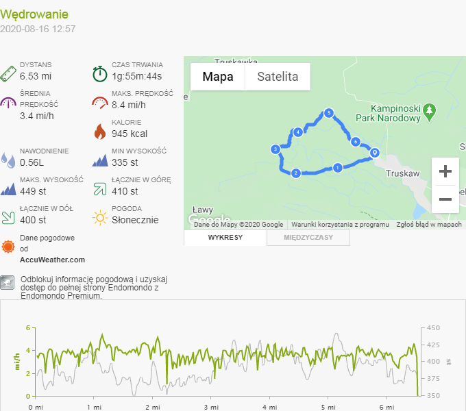 Mnie interesuje tylko embedowanie treningów, więc przykładowy wygenerowany kod dla mojej ostatniej wędrówki po Kampinosie wygląda tak: