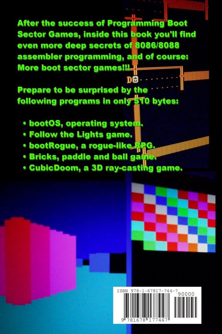 The sequel to the successful “Programming Boot Sector Games” book, now covering bootOS, bootRogue, cubicDoom, Bricks, and Follow the Lights. You can run these programs on any PC machine and no program exceeds 512 bytes of executable code! – The nanochess’ store