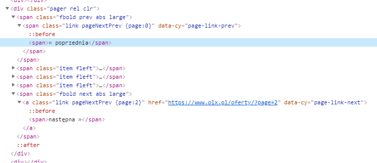 Wygląda to starszynie, ale na szczęście łatwo poruszać się po tym gąszczu. Jako uchwyt do każdej oferty można zastosować jedną z ustawionych klas kolumn. Mój kod “łapie” po photo-cell, a z tego łatwo przejść do kolejnych elementów.